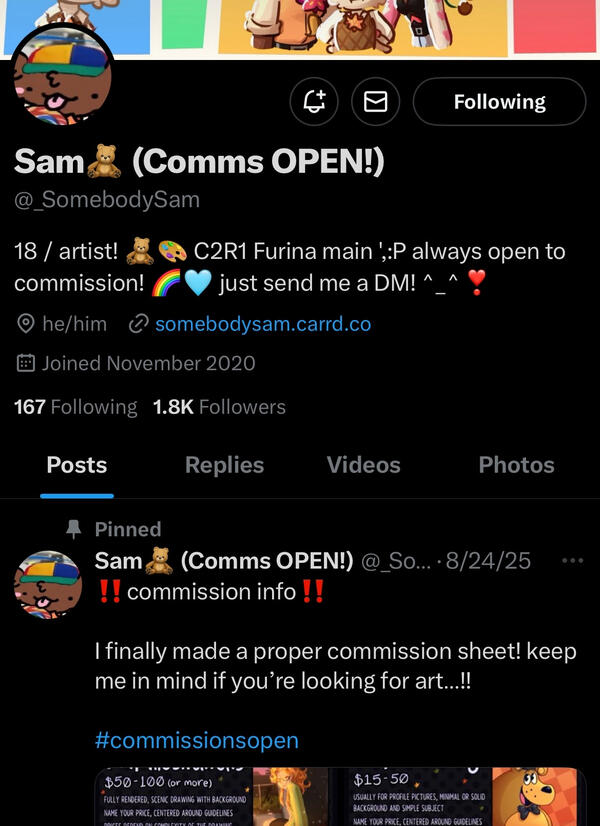 Sometimes when I'm not drawing I play games like FNAF or Genshin. I'm not very active on Genshin anymore but I main a C2R1 Furina